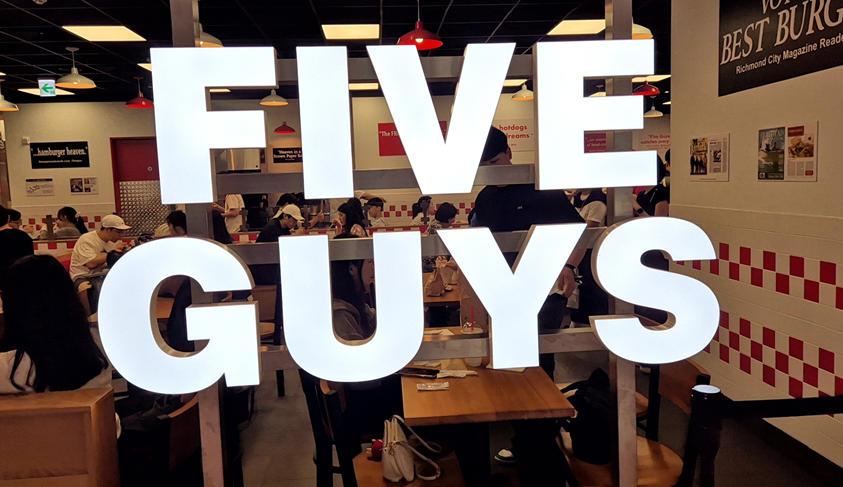 파이브가이즈(Five Guys)는 미국에서 시작된 프리미엄 수제버거 브랜드입니다. 주문 즉시 만드는 방식과 15가지 무료 토핑 선택이 가능해 개인 맞춤형 버거를 즐길 수 있죠. 국내에서는 몇 안 되는 지점 중 하나인 광교 갤러리아점은 늘 긴 대기줄로 유명한 곳입니다.