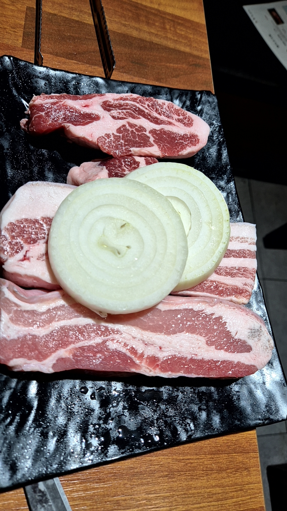 흑돼지 오겹살 고기 2인분 먹고 후식으로 냉면과 된장찌개를 먹었는데