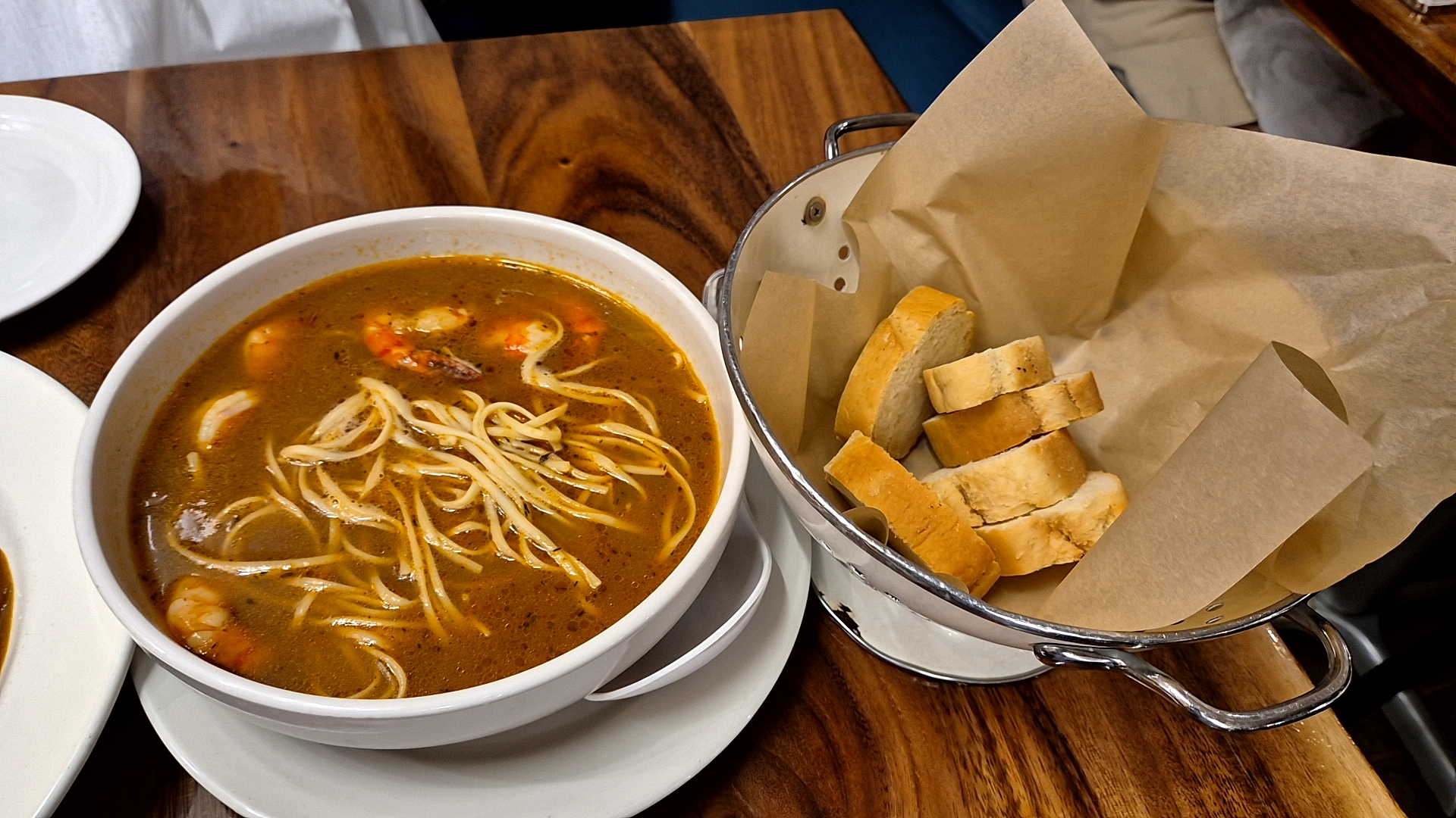 비치인 쉬림프는 약간 똥얌꿍 같은 느낌이긴 하지만 약간은 밋밋한 맛이고 빵을 찍어 먹으면 담백하긴 한데