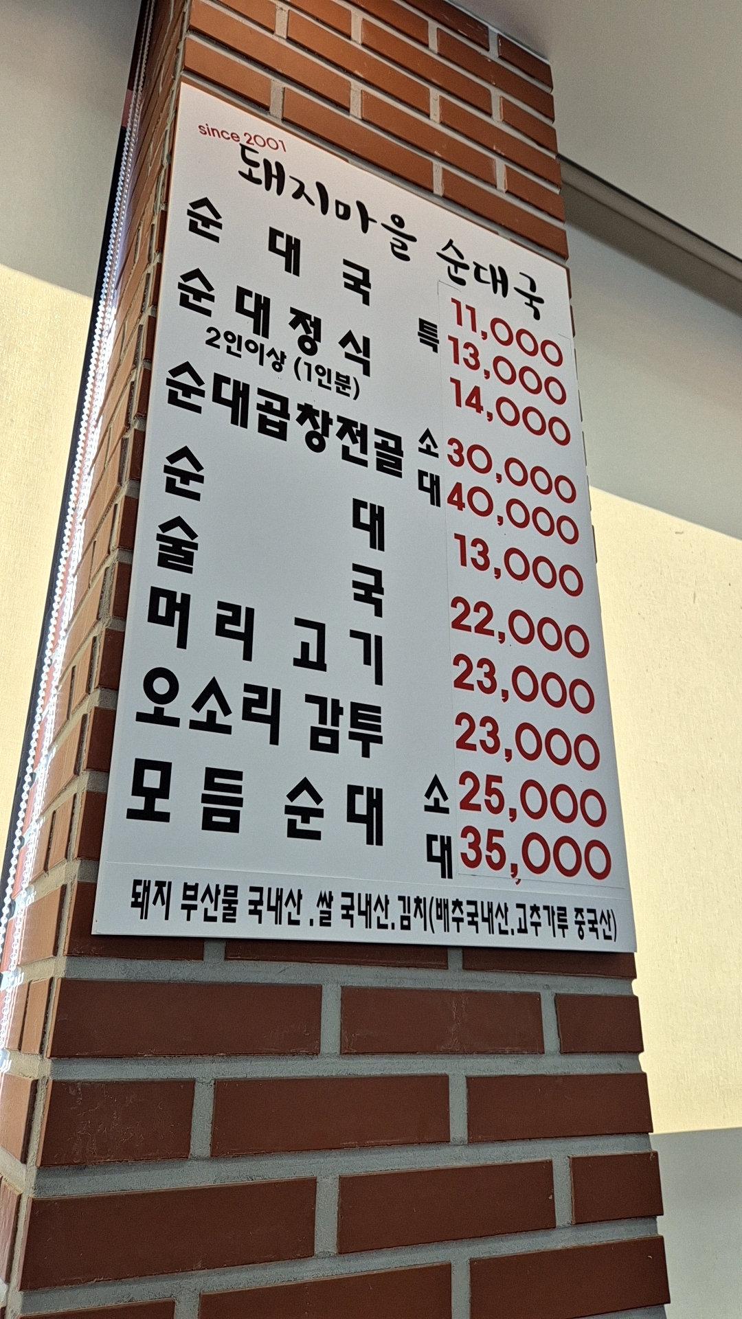 메뉴는 순대 관련된 것만 있습니다. 단촐한 메뉴판