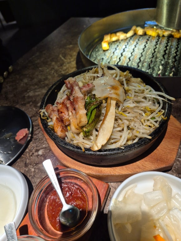 이 외에도 된장찌개, 숙주볶음 등 다양한 메뉴가 준비되어 있어 고기와 함께 즐길 수 있습니다