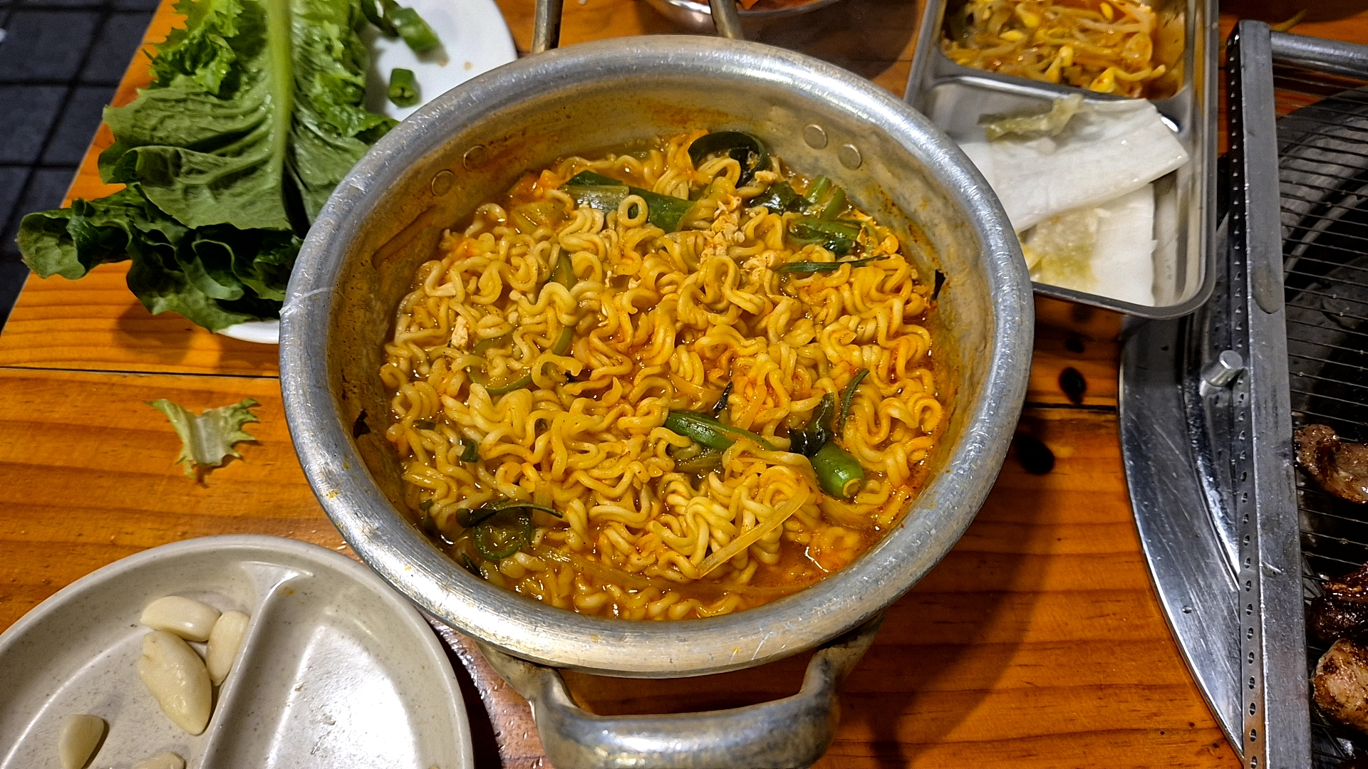 라면은 고기 불판위에 김치를 살짝 구워서 먹으면 라면에 김치 조합은 국룰이니 더 없이 맛있겠죠. 표현하지 않아도 아실거라 생각합니다.🎯