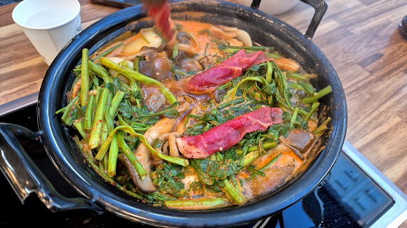 또한, 샤부샤부용 소고기와 신선한 ㅋ채소가 아낌없이 제공되어 가성비가 뛰어난 것도 장점입니다. 기본 제공되는 야채의 양이 넉넉하고, 추가 주문도 가능해 개인의 취향에 맞게 조절할 수 있습니다.