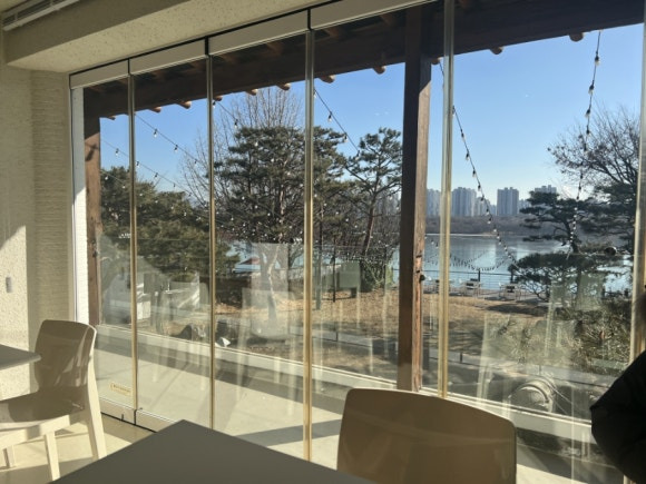 다른 레스토랑은 주차장뷰도 있는데 우리 자리는 한강뷰