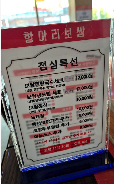 학원 앞 큰길에서 좌측으로 100m 이내에 위치한 항아리 보쌈을 첫날 점심으로 이용 했습니다. 4명이 한 조였는데 아직 서먹서먹한 관계라 편하게 혼자 식사를 하는 것으로 하고 입간판에 먹음직스러워서 들어갔는데 널찍한 식당에 들어갈 때부터 친절한 직원분의 맞이로 기대가 됐습니다.