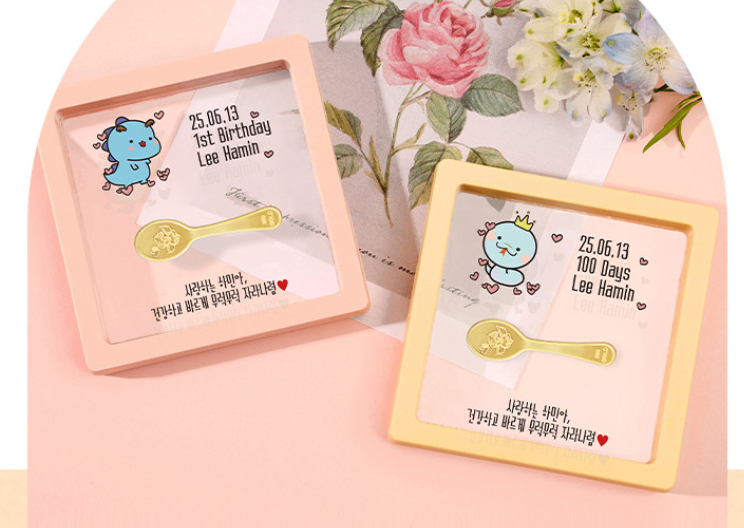 특히, 액자 안에 아기 사진이나 문구를 넣을 수 있어 ‘단 하나뿐인 맞춤 선물’이 가능해요. 요즘은 금반지 대신 ‘기념 + 인테리어 + 투자’ 세 가지를 한 번에 잡을 수 있는 선물로 각광받고 있죠. 🎁