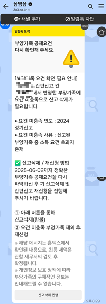 아주 신속하고 정확한 삼쩜삼이라고 생각 합니다. 환급 신고 접수 당일 6시간도 채 되지 않아 "부양가족 요건 확인 필요 안내"라는 문자로 제가 신고한 내역의 삭제를 요청한다는 연락을 받았습니다.