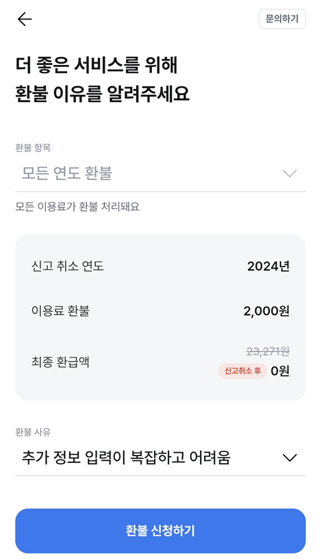 처음엔 기대했던 환급금이 생각보다 적거나, 수수료 대비 실익이 없다고 느껴져서 취소하고 싶어질 수 있습니다.