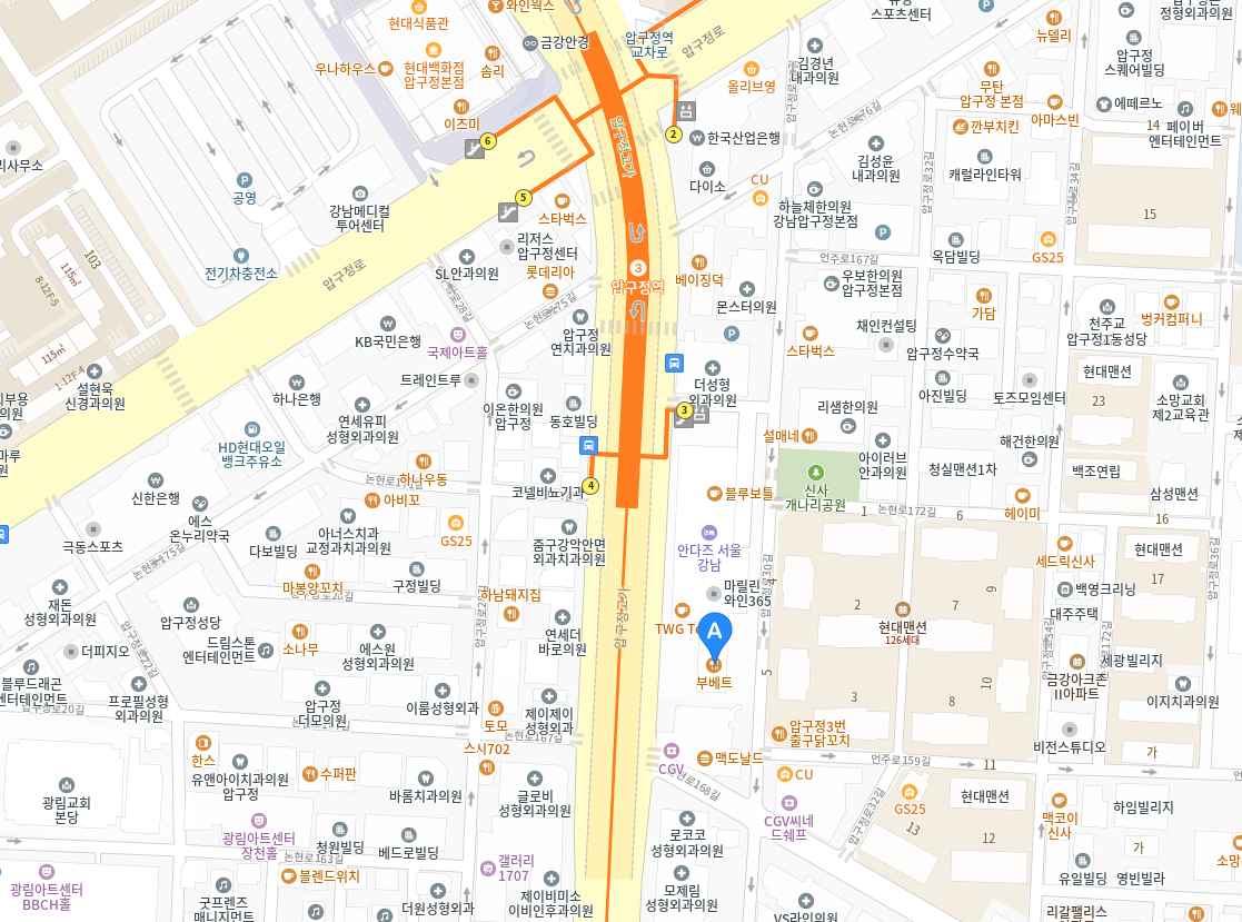 압구정 브런치 부베트. (강남구 논현로 854 안다즈 서울 강남 상업시설 건물 1층)