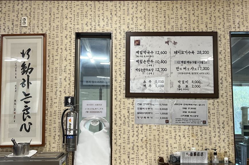 비빔막국수가 매콤 달콤의 매력이 있다면, 물막국수는 시원한 국물의 감칠맛이 일품입니다. 이곳의 물막국수 쇠고기, 돼지고기, 닭고기 4:2:1 비율로 구운 채소와 정성껏 달인 육수를 사용합니다. 특히 잘 삶아진 메밀면과 국물이 잘 어우러져 입안에서 부드럽게 넘어갔어요. 무엇보다 더운 여름철, 속을 확 풀어주는 듯한 청량감이 날씨가 더운 날에는 이 물막국수 한 그릇이면 몸속까지 시원해지는 느낌을 느낄수 있습니다.