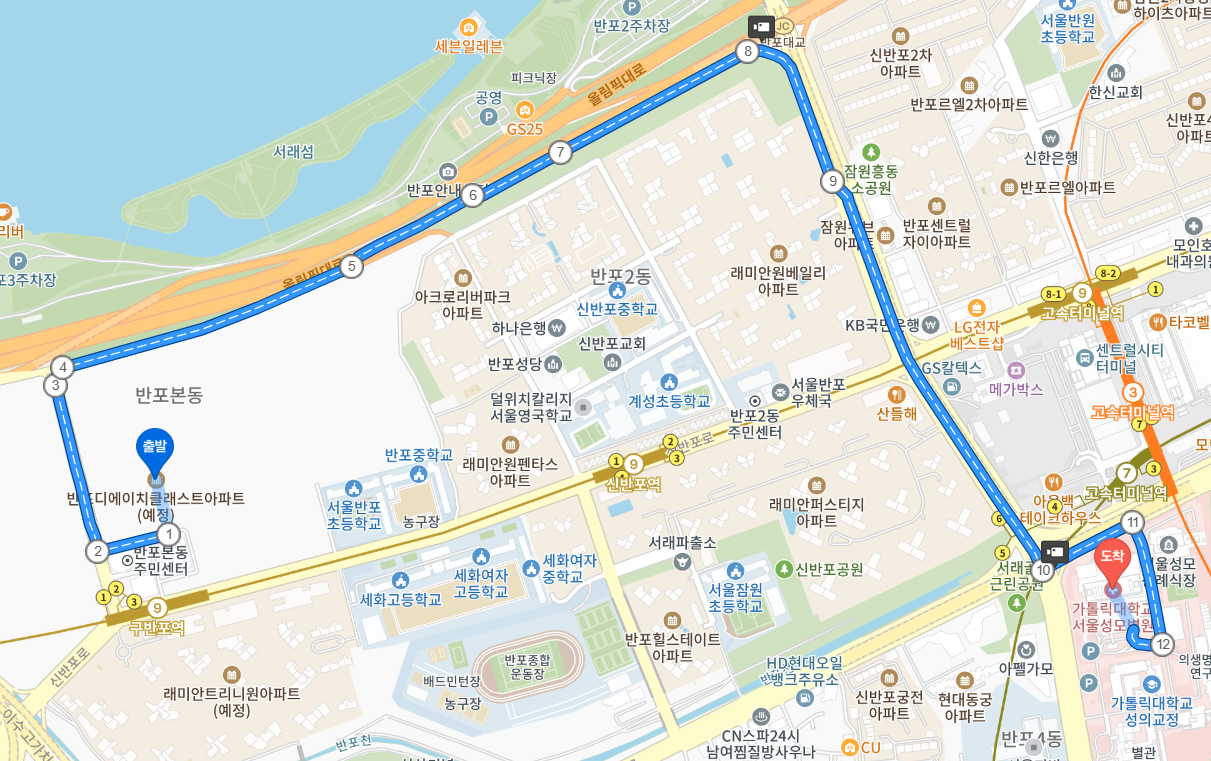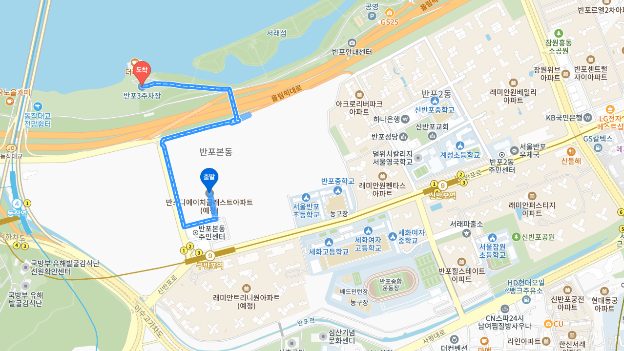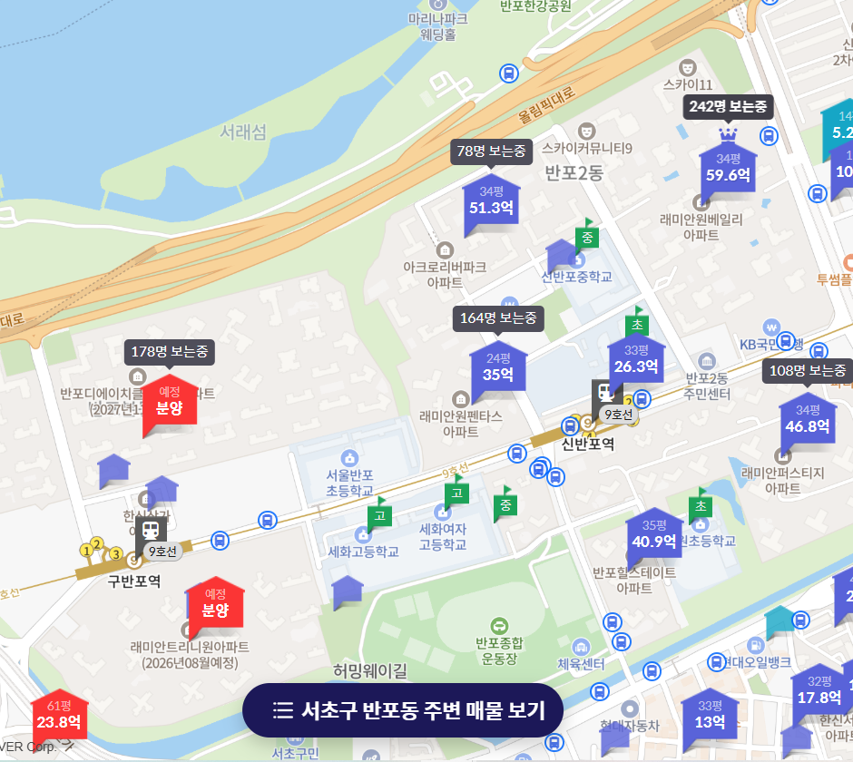 A. 지하철 9호선 구반포역 도보 거리이며, 한강 조망 가능, 뛰어난 강남권 입지입니다.