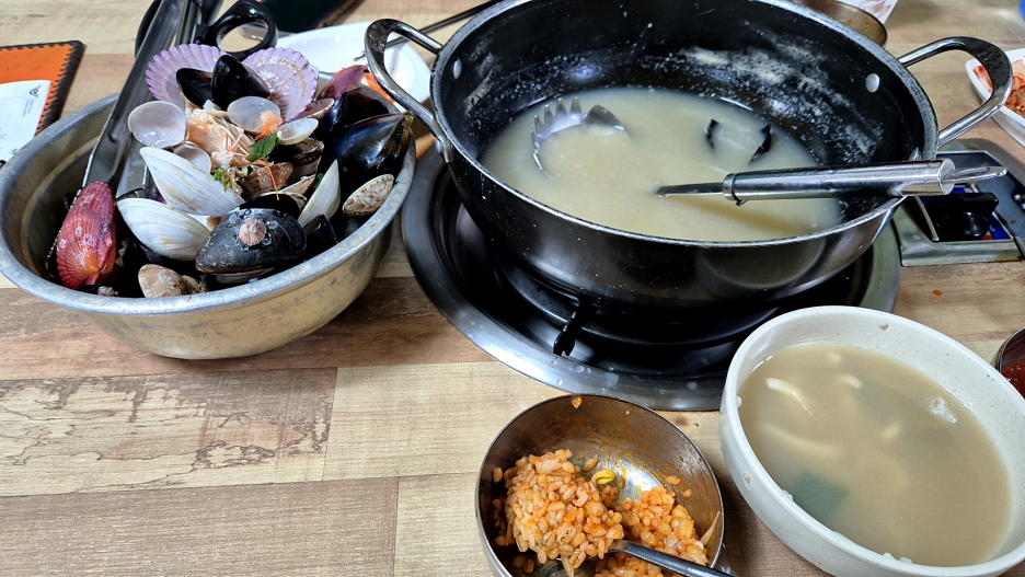 - 🦪 바지락과 홍합이 가득! – 바다의 깊은 감칠맛이 그대로