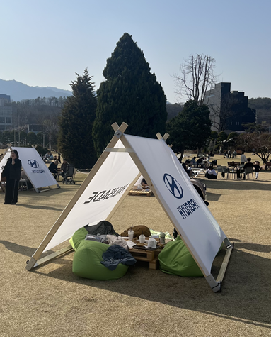 더불어 현대자동차에서 넓은 잔디 마당에 간이 텐트를 쳐서 해를 피하게 만들어 놓고 캠핑장 느낌을 살려 고객들이 편안하게 쉴 수 있는 공간을 만들어 주어 더 좋았습니다. 그 텐트는 당일 일회성인지 잘 모르겠으나, 17시가 되니 철수하는 느낌이었습니다. 다음번 방문 때는 이런 공간이 없을 거 같은 느낌입니다. 혹 보이는 사진과 같은 느낌을 원하신다면 꼭 미리 확인해보시고 가시는 걸 추천드립니다.