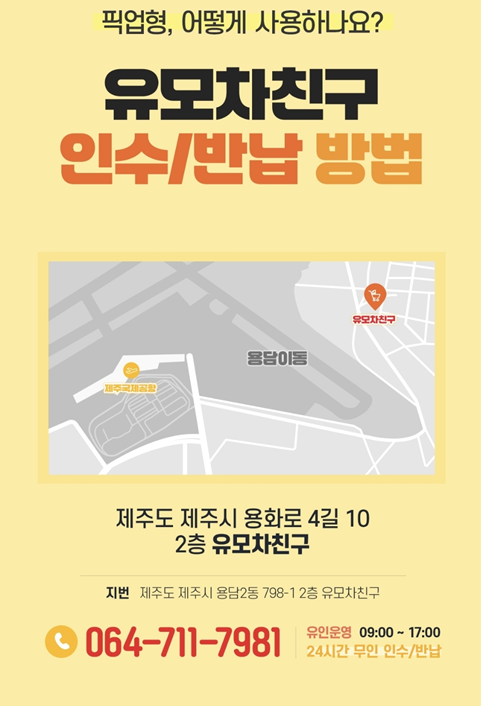 대부분 업체가 제주공항 픽업 서비스를 제공합니다. 픽업 차량을 이용해 렌트카 회사에서 픽업합니다.