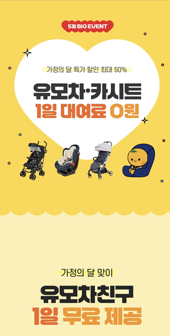 5월 가정의 달 유모차 카시트 1일 무료 제공