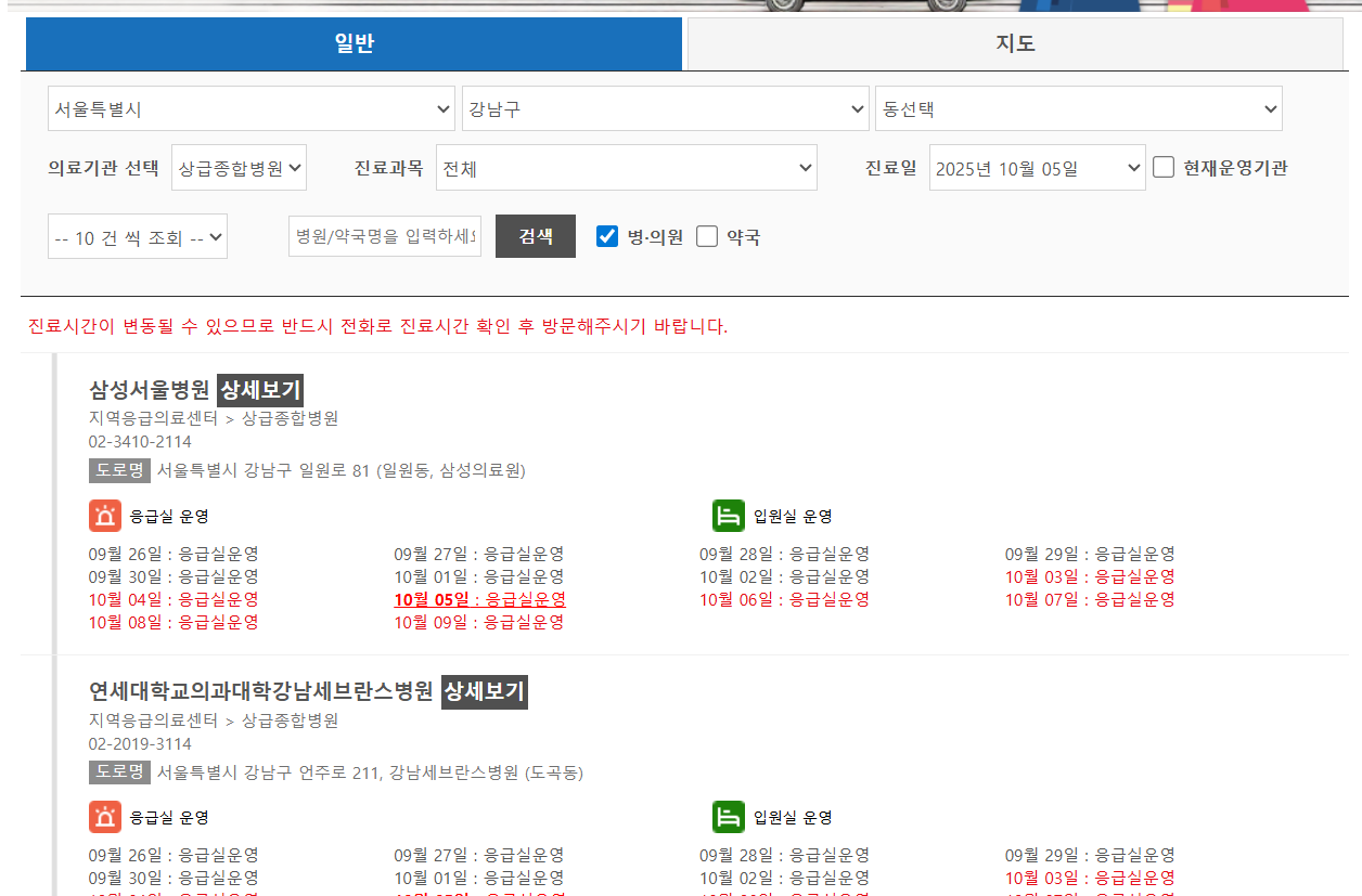 - 🏥 응급실은 중증 환자 우선 진료이므로, 단순 감기·소화불량 등은 일반 진료소 이용