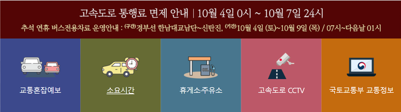 2025 추석 고속도로 통행료 면제기간