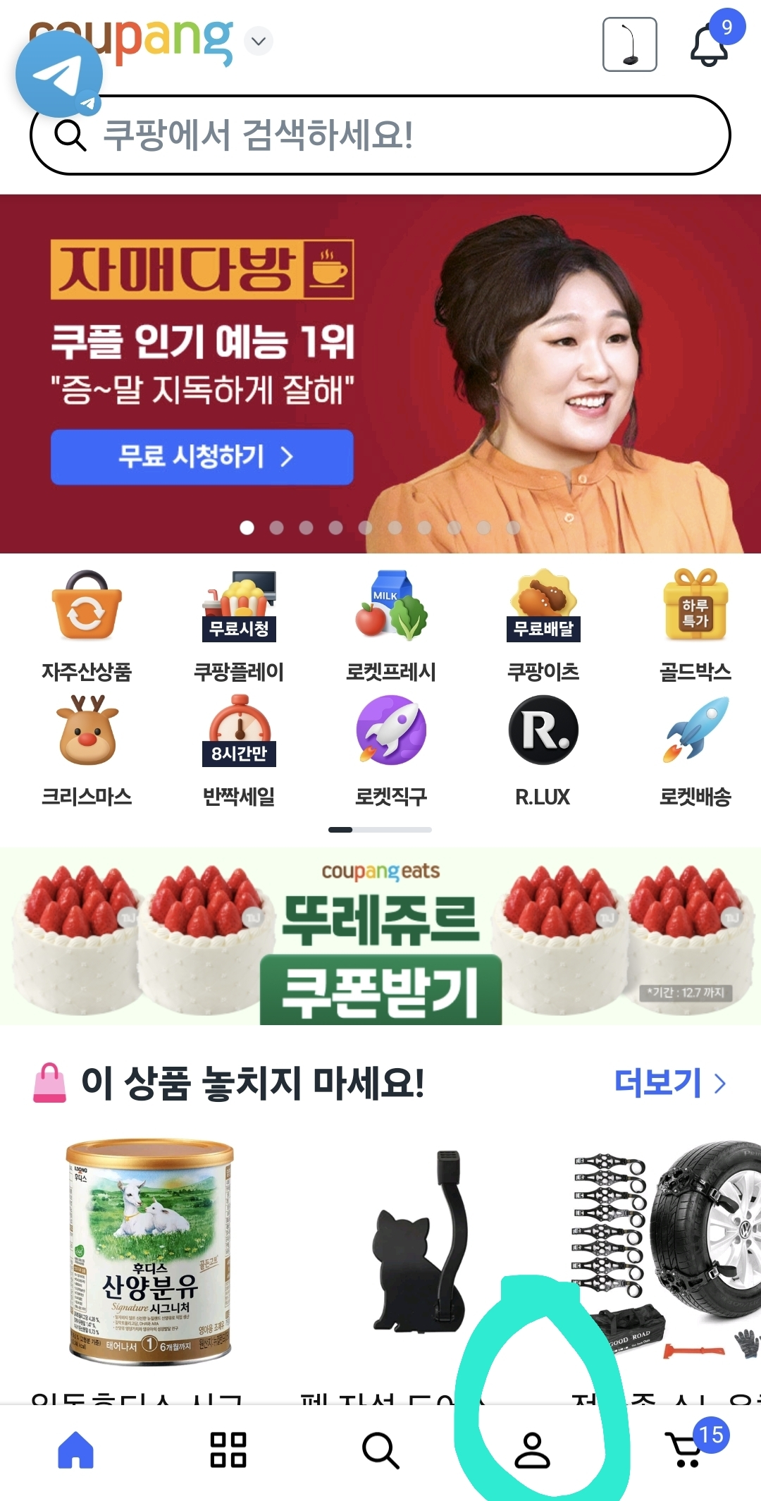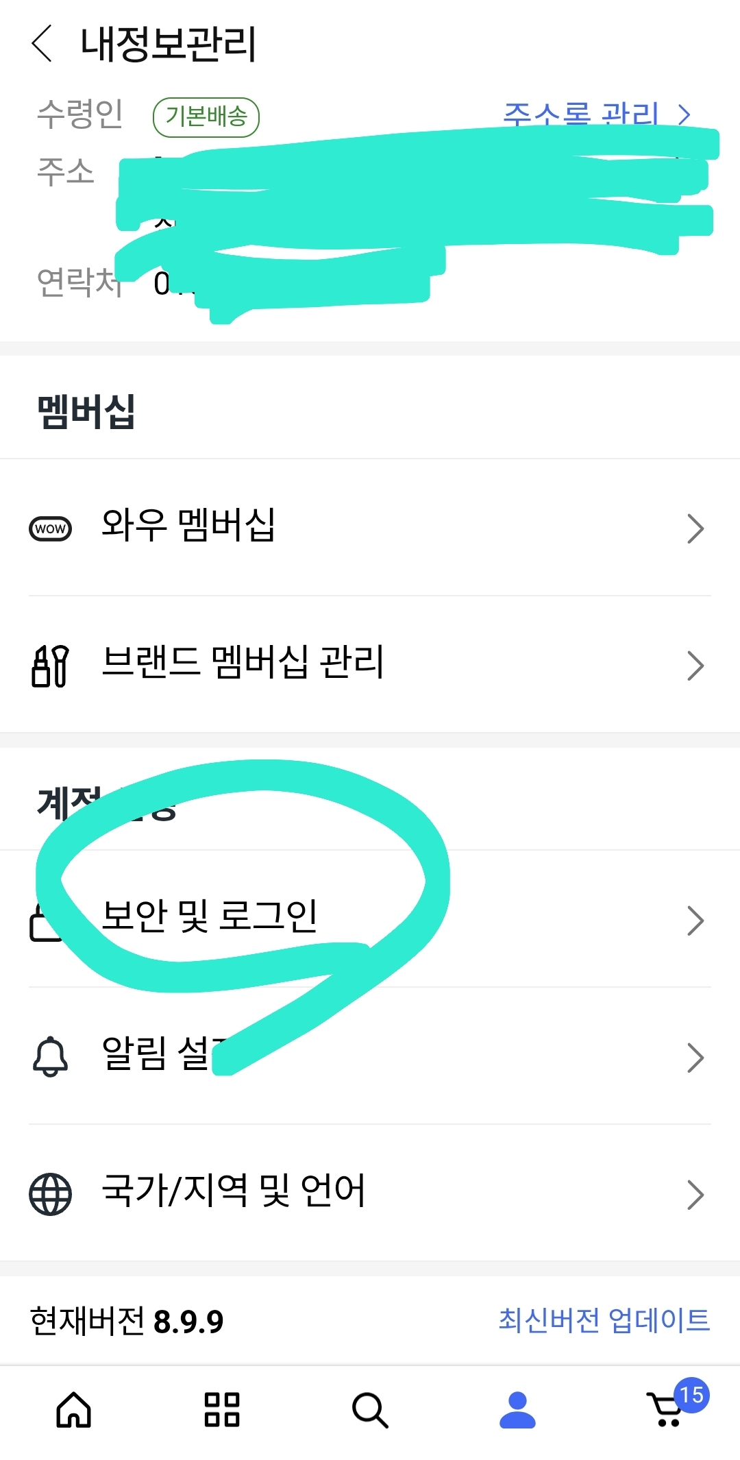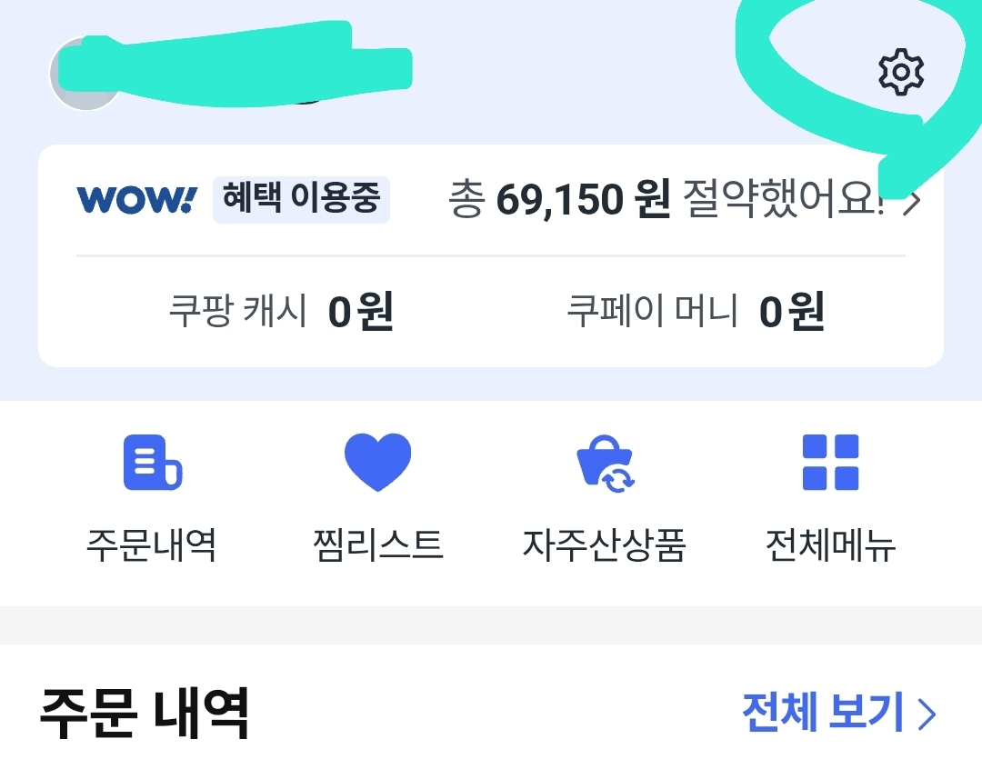 경로: 쿠팡 앱 → 사람 모양 → 톱니바퀴 → 보안 및 로그인