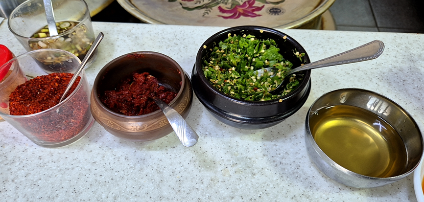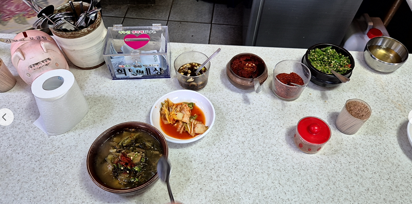 테이블 위에는 단촐하게 잘게 썰린 고추와 다데기,간장 고추가루가 준비되어 있어, 개인의 취향에 따라 얼큰하게 조절할 수도 있습니다.국물이 자극적이지 않고 담백한 맛이 특징인데, 한 숟갈씩 떠먹을 때마다 깊은 된장 국물과 부드러운 시래기가 어우러지며, 마치 할머니가 해주신 국밥을 먹는 듯한 정겨운 기분이 듭니다. 사실 주인장께서는 진짜 왕할머니와 관계는 어떻게 되는지 모르겠지만 우리 어머니뻘 할머니가 계신다. 그냥 딱 고향의 맛이라고 할 수 있습니다.