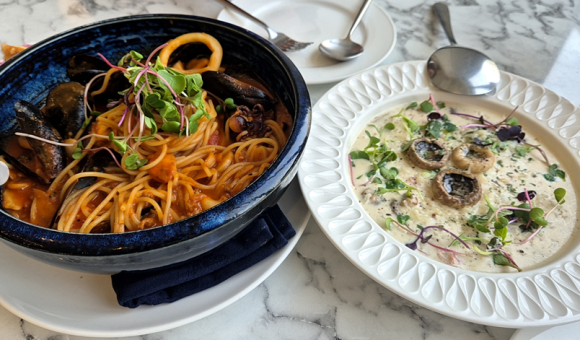 아점으로 브런치인데 저희는 스파게티, 리소토, 프렌치토스트 스몰
